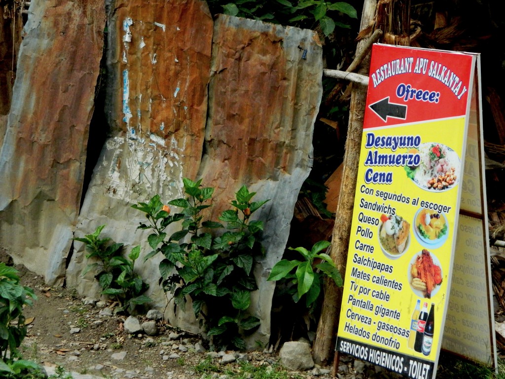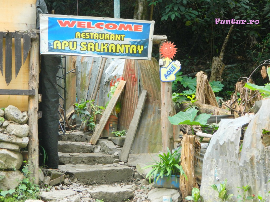 De partea cealaltă a şinelor sunt câteva restaurante – dacă le putem numi astfel – un fel de cabane mici crescute în coasta muntelui cu câte o terasă de lemn unde însă poţi mânca la fel de bine ca mai peste tot în Peru (adică chiar bine).